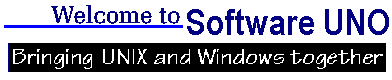 This is the home of the Software UNO product line. This includes the popular WM_MOTIF and WM_CURSES libraries, the most cost effective alternatives for porting your C or C++ MS Windows applications to UNIX. Our mission is to provide developers with the best tools to address the needs of the MS Windows and UNIX markets with common source code. Our strategy is simple: our success is tied to your success. We want you to be succesful in the UNIX market and will go out of our way in supporting your efforts in penetrating this market. Here you can not only get additional information on our products and services but also download fully functional demos of our products. Sit back, relax and enjoy your stay !!!